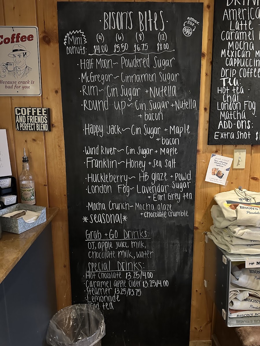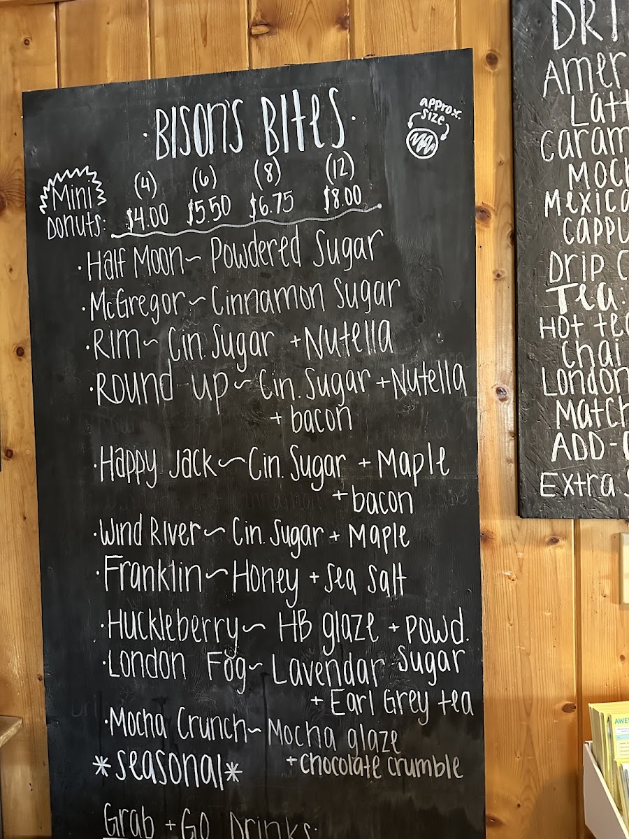 Welcome to Bison’s Bounty—a charming coffee shop nestled in Pinedale, Wyoming. This historic gem offers an inviting atmosphere where you can indulge in top-notch coffee and delicious mini donuts. The menu features a delightful array of drinks including classic Americanos and frothy lattes, as well as unique offerings like the Mexican Mocha and the adventurous Моспа. For those seeking alternatives, Bison’s Bounty proudly serves oat and almond milk, along with a festive egg nog option.